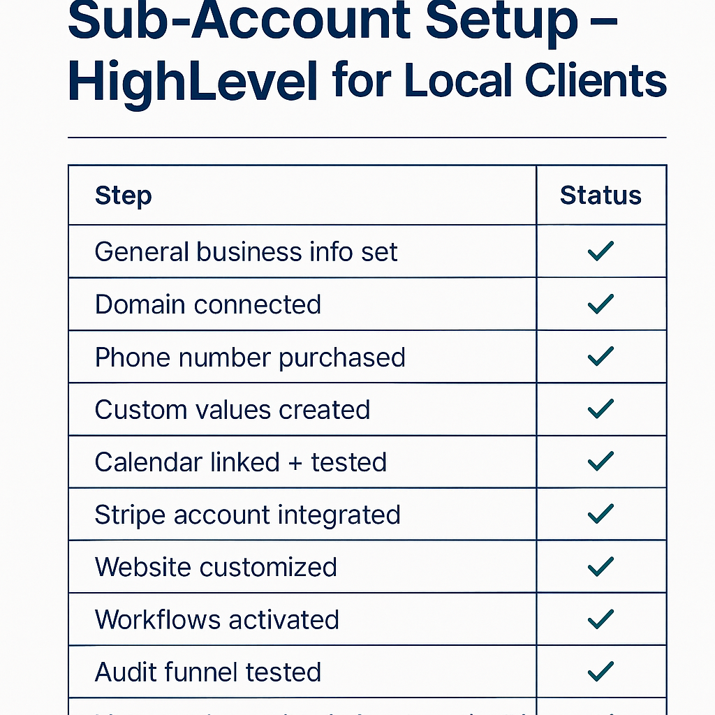 🧾 Sub-Account Setup Checklist